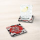 Coasters in a large, red, camellia flower, in an Art Nouveau inspired style, with a floral background in black and white
