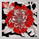 Poster in a large, red, camellia flower, in an Art Nouveau inspired style, with a floral background in black and white