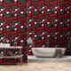 Red, Black and White Hearts and Flowers Pattern Wallpaper