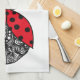 Red black and white line tangle ladybug tea towel