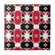 This ceramic tile exudes a sense of timeless elegance with its intricate geometric pattern. The design is symmetrical and mirrors itself both horizontally and vertically, creating a harmonious visual effect. The primary colours used in the design are red, black, and white, which are arranged meticulously to create depth and visual interest. The pattern is dominated by geometric shapes, including diamonds and circles. White shapes resembling four-petaled flowers stand out against the black background, while red diamonds with white borders are centrally placed within the larger geometric patterns. The design is repetitive, adding to the tile’s charm. This tile, with its complex pattern and vibrant colours, can enhance any space, lending it a touch of modern sophistication. It’s a perfect blend of art and functionality.