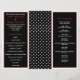 The text on this red, black, and white polka dot wedding program is fully customisable. It is intended to be folded down the middle when you receive it. To change the text, use the personalise option. For more extensive changes, such as changes to the font, font colour, font size, or text layout, use the customise it option. Once your text is finalised, if you need to move it around a bit, you can do that using the customise it option. This polka dot special occasion program is currently customised as a wedding program, but it would work well as a program for other special occasions as well. Really, this would even make a really nice church bulletin with changes to the text. Let your imagination lead you.