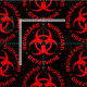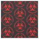 Biohazard warning symbol pattern fabric in black with bright red biohazard symbols circled by 'Biohazard' text. Choose from several fabric types in both natural and synthetic fibers. Pattern is unlocked, that means you can resize it if you need mini-patterned fabric for scale models, art projects, doll clothes, etc.