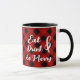 A red and black buffalo check background with the words Eat Drink and Be Merry. A unique gift for special days such as a birthday or simply because you or your special person love the buffalo check design.