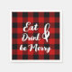 A red and black buffalo check background on paper napkins with the words Eat Drink and Be Merry. A unique gift for special days such as a birthday Christmas or simply because you or your special person love the buffalo check design.