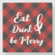 A red and black buffalo check background coaster with the words Eat Drink and Be Merry. A unique gift for special days such as a birthday Christmas, or simply because you or your special person love the buffalo check design.
