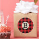 Red Black Buffalo Plaid Chequered Kraft Monogram Classic Round Sticker