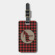 The background on this luggage tag is a red and black buffalo plaid pattern. At the centre is a tan circle banner with a matching red and black plaid silhouette elk. The back of the tag is black with two fields for your easy to read custom text in white.