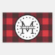 Red black Buffalo Plaid Lumberjack Name Monogram Rectangular Sticker