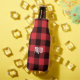 Red Black Buffalo Plaid Monogram Bottle Cooler
