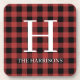 Red Black Buffalo Plaid Monogram Holiday Coaster