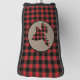 The background on this unique putter cover is a red and black buffalo plaid pattern. At the centre is a tan circle banner with a matching red and black plaid silhouette moose head. Be sure to see the matching golf club head covers in our store.