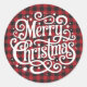 Red & Black Buffalo Plaid Script Merry Christmas Classic Round Sticker