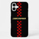 Red Black Chequered Racing Flag Gold Monogrammed iPhone Case