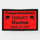 Hang this Red Black Congratulations Graduate Graduation Banner to honour your grad. Personalise with your graduate's name and class year. This minimalist school colour banner features a thick black border surrounding a red background and lots of school spirit.
