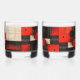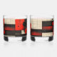 Red Black Cream Geometric Pattern Whiskey Glass