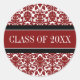 Red Black Damask Graduation Custom Year Classic Round Sticker
