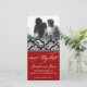 Elegant Red Black Damask Save the Date Photo Card. Use these elegant save the date with intricate damask pattern and script thank you text to send your wedding announcement to your future wedding guests. Add your own photo and personalise your message. Sample photo only as shown. Font and graphics licensed for use. Design by Elke Clarke ©