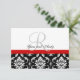 Elegant Damask RSVP Card for weddings with monogram and bride and groom names. Red Black Damask Wedding RSVP For Square Invites Layout Design by Elke Clarke©2010. Graphics licensed. PLEASE EXCUSE THE TEMPORARY GLITCH IN THE DESIGN VIEW. YOU CAN SELECT "CUSTOMIZE IT" AND USE THE EDIT TOOLS TO FIX THIS OR CLICK ON THE LINK BELOW TO A NEW COPY OF THE SAME DESIGN WITHOUT THE ISSUE.