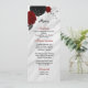 beautiful red and black flowers with grey leaves on grey marble background botanical wedding menu.