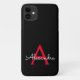 Red Black Girly Script Monogram Name Modern Case-Mate iPhone Case