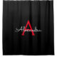 Red Black Girly Script Monogram Name Modern Shower Curtain