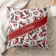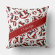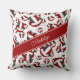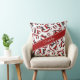 This girly volleyball team colours throw pillow features a pattern of varied size stylised red, black and white volleyballs turned every which way overlying a volleyball net detail graphic - the volleyballs' red and black panels are blended with an artsy, girly floral pattern - personalise her name in a sophisticated handwritten font on a bold, angled, full width red colour strip - white background and red colour strip are customisable - by katz_d_zynes