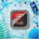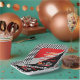 Race on over to celebrate a go kart racing-themed birthday. This birthday party design features a red and black go kart with a red helmeted drive and flames shooting out the back of the go kart. The words "Ready, Set, Go!" are also done in a flame-toned gradient. A pair of chequered flags are waving the driver off.