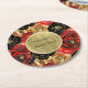 Red Black Gold Glam Floral Bridal Shower Round Paper Coaster