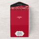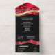 A beautiful all-in-one spring, summer, fall or winter invitation featuring faux sparkling gold and red glitter. A combination of modern bold and calligraphy script font templates for your personalised wording appear on both sides of the invite and the bottom third has a tear off response card with personalised rsvp address for your guests to complete. These are ideal for any birthday; quinceanera or shimmer foil inspired wedding. The black background colour can also be changed to suit your colour scheme.