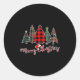 Red Black Green Buffalo Plaid Merry Christmas Tree Classic Round Sticker