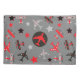 This bright and colourful kids pillow case has red, black, and grey aeroplanes flying all over it! There are two styles of planes in different patterns and colours. Among the planes are red, black, and grey stars. At the centre is a red aeroplane framed in a black circle. Everything is placed on a medium grey background. Any boy who loves planes and flying will love this pattern, and there are blankets and other products to match!