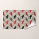 This attractive three piece towel set features an interesting pattern of maroon, red, black and grey moose silhouettes on a light tan background. Perfect for a cabin or woodland home.