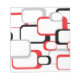 A cool retro inspired design of red, black and grey squares against a white background on a cool notepad
