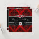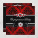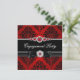 Elegant Red & Black Engagement Party Invitation. Pretty damask & diamond pearl jewels. Please note: All flat images! They do not have real jewels!