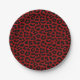 Red Black Leopard Spots Print Pattern Paper Plate