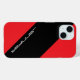 This minimalist case for the iPhone is red with one diagonal thick black stripe. Name is on the diagonal in the black stripe. Simple but eye-catching! Easy to personalize, or delete example name. All Rights Reserved © 2024 Alan & Marcia Socolik.