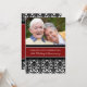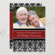Custom photo 50th wedding anniversary party invitation card in elegant crimson red, black and white classic floral damask pattern, delicate and modern. Customisable with your party details and your own photo.