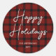 Red & Black Plaid Happy Holidays | Classic Round Sticker