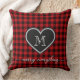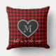 Red Black Plaid Pattern Christmas Heart Monogram Cushion
