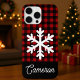Red & Black Plaid with Snowflake Custom Name Case-Mate iPhone Case
