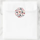 A sticker featuring a design consisting of black change purses with white polka dots, red clutch purses with black bow, red rubies, red and black cat eye sunglasses, and bottles of perfume with red atomizer.
