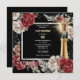 Red black rose floral sparkling wine any age party invitation