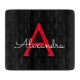 Red Black Script Girly Monogram Name Cutting Board