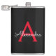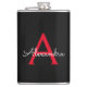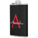 Red and Black Monogram Name and Initial Party Flask. This makes the perfect sweet 16 birthday, wedding, bridal shower, anniversary, baby shower or bachelorette party gift for someone that loves glam luxury and chic styles.