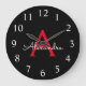 Red and Black Simple Script Monogram Name Clock. This makes the perfect sweet 16 birthday, wedding, bridal shower, anniversary, baby shower or bachelorette party gift for someone that loves glam luxury and chic styles.