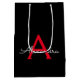 Red Black Script Girly Monogram Name Medium Gift Bag