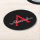 Red Black Script Girly Monogram Name Round Paper Coaster