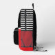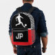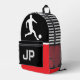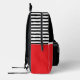 Kick off the school year with confidence! This bold red, black, and white soccer backpack for boys features a dynamic soccer player silhouette on the front and a custom monogram option to personalise with your student’s initials.