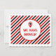 Mark your new location in Texas for all your friends and family with this announcement card. Striped background reminiscent of old air mail letters in various shades. Marker on the front includes the state of Texas. Room on the back for your new address and photo. Comes in burnt orange, maroon, red, state flag blue, green, purple, orange, black and yellow - most based on state school colours. Matching products available.